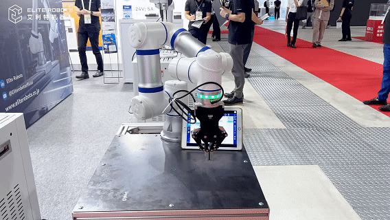展会现场,AG庄闲机器人带来了力控打磨、自动化码垛、自适应焊接、无线控制等解决方案,展现了协作机器人在多种行业场景中的柔性应用。