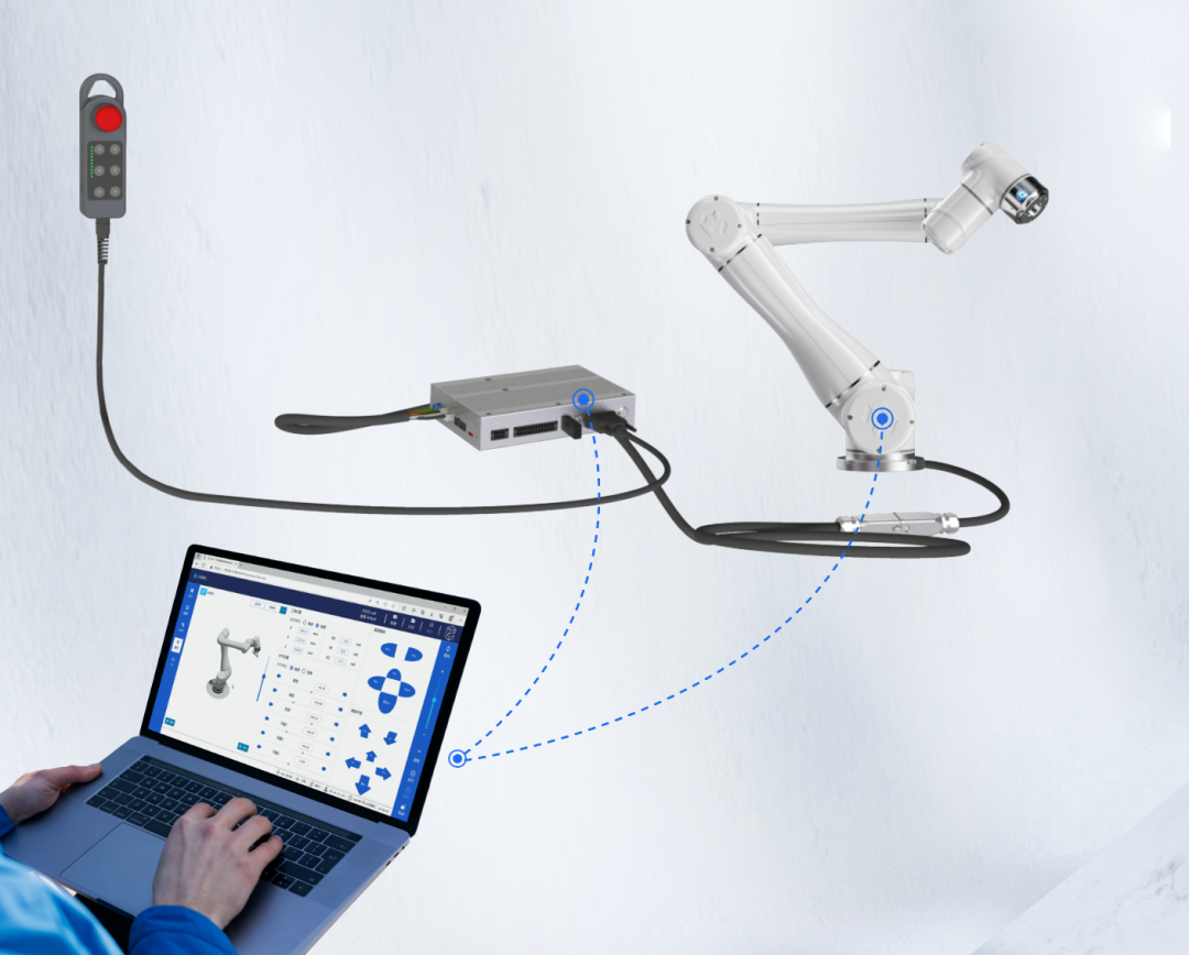 E-Wireless无线套装产品,支持手机/电脑/pad跨设备多端协同,基于浏览器的WebUI示教软件,可满足用户2个核心诉求: