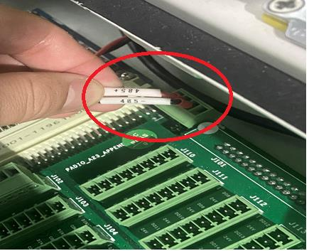 3.  检查控制柜 I/0 板上 485 端子接口是否插好,可尝试重新插拔。