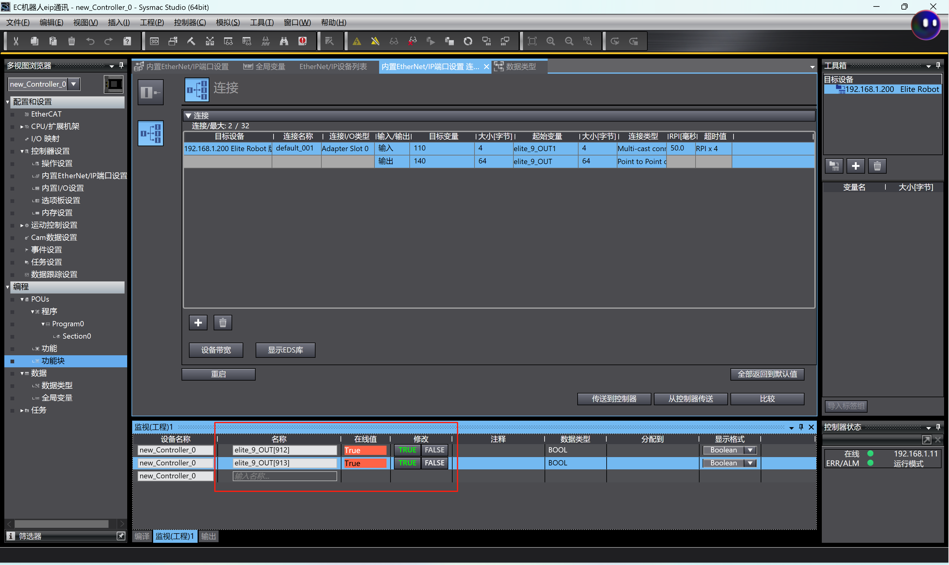 EC机器人与欧姆龙EthernetIP