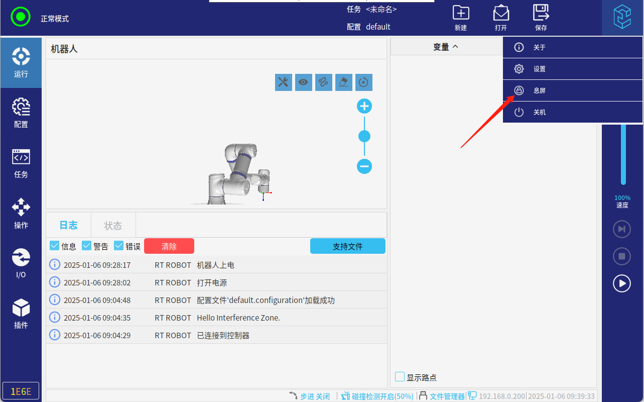 需要注意,2.13之前的版本,屏保只有自动锁屏,没有手动锁屏。设置好自动锁屏时间 后,规定时间内示教器没有任何操作,才会锁屏。