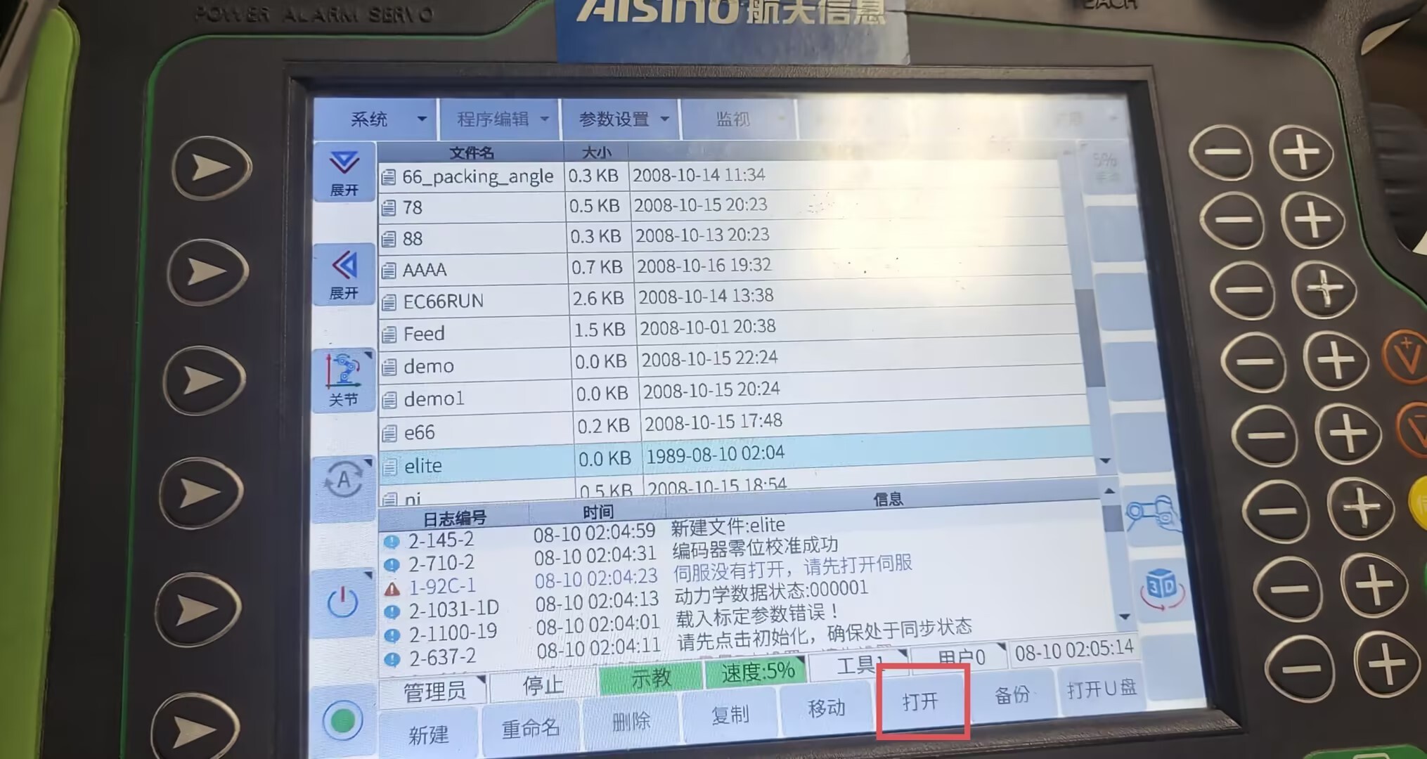 在示教器主页面下点击左下角新建-文件-输入文件名-选择并打开