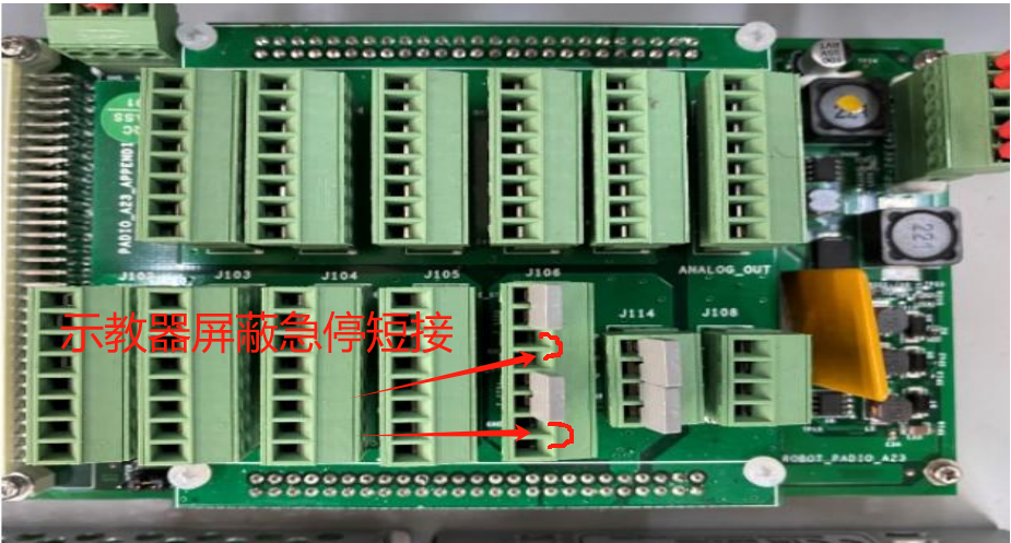示教器上带有两路急停信号,如果需要拔掉示教器。先要在示教器上将示教器关闭。