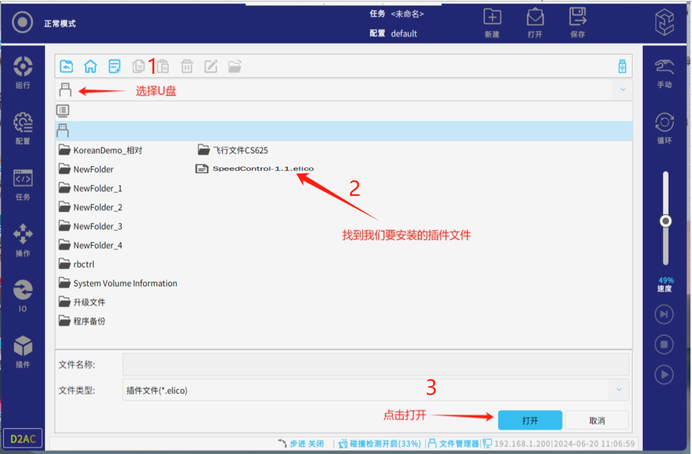 CS机器人在与外部设备进行通讯时,通常会使用机器人内部的寄存器进行信息交互,机器人自带可查看modbus寄存器,关于布尔寄存器、整数寄存器、浮点数寄存器的查看可安装寄存器监控器插件进行查看,插件文件询问AG庄闲人员方可获得,存放至U盘内,并插入机器人示教器或控制柜USB接口。