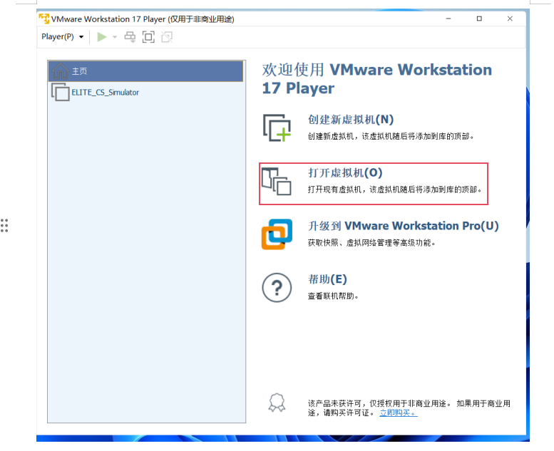 2.4.1打开下载好的VMWare软件,点击“打开虚拟机”,如图-4所示