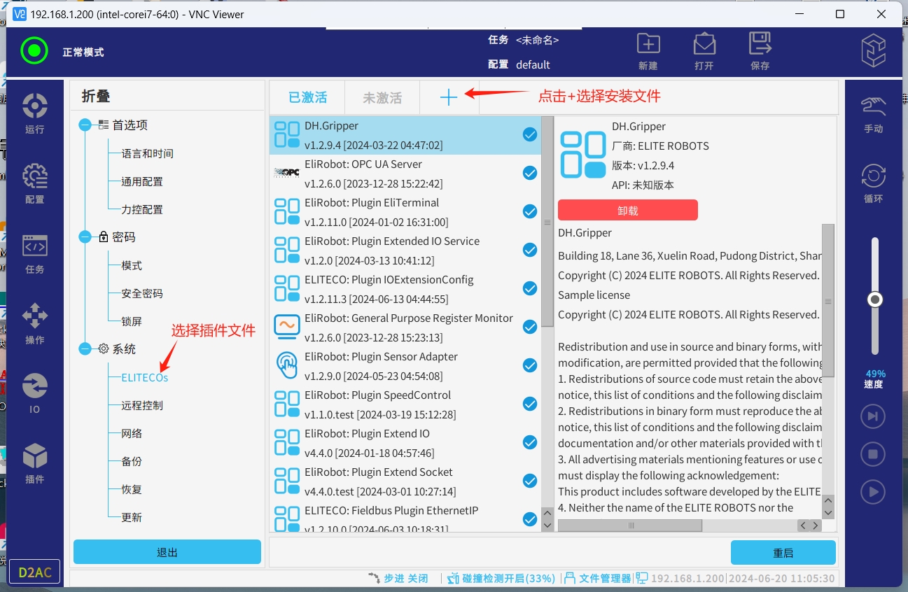 ● 将获取到的插件文件放置到U盘内,并将U盘接入机器人USB接口,按照下方操作安装IOExtensionConfig插件。