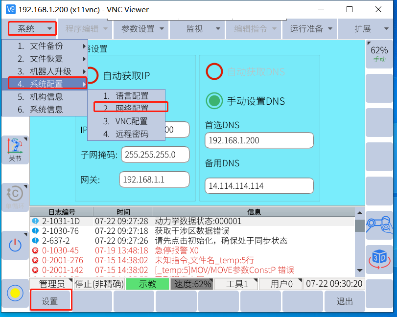 2-1-2. 配置机器人IP地址: