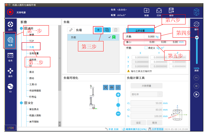 2.2CS机器人负载以及重心的设置,按照图-5所示操作步骤操作