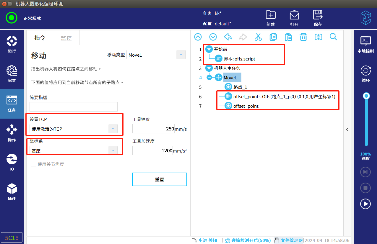 3.4要注意偏移后的点位数据是在那个坐标系下,与移动指令配置中的是否相同。